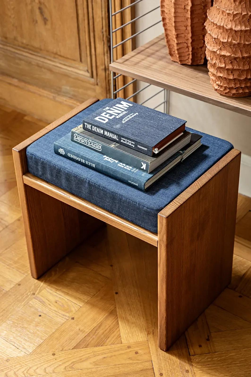 Nous devions aussi prendre de la distance avec l’approche marketing des scénographies boutiques, pour concevoir un lieu purement expérientiel et narratif au travers des codes visuels iconiques de la marque. Le fil rouge de cette narration reste le denim, distillé çà et là par la création de pièces sur-mesure détournant le textile à des fins artistiques et ornementales.