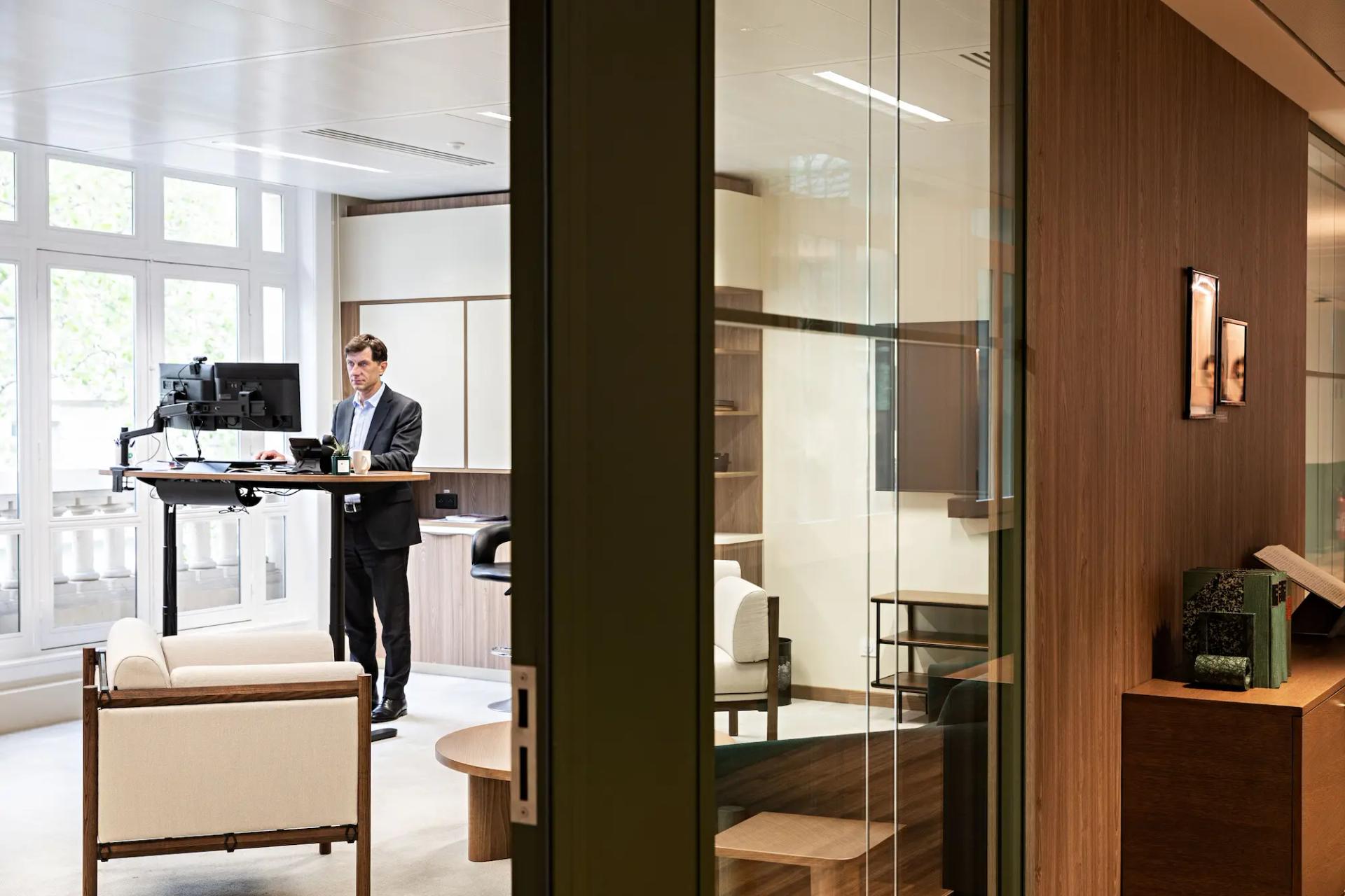 L'utilisation de technologies avancées pour créer des espaces de travail ergonomiques et adaptables, tels que des bureaux ajustables en hauteur, des sièges intelligents, des systèmes de gestion de la lumière et du bruit, etc.